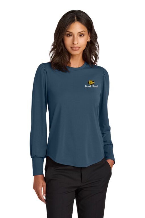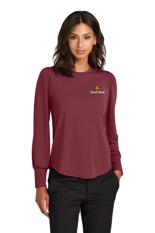 Delicately puffed blouson sleeves and a jewel neckline help create a feminine silhouette in this top that leans into a fashionable feel. Designed to be worn tucked or untucked, this flattering style is perfectly at ease in dressy or casual occasions.